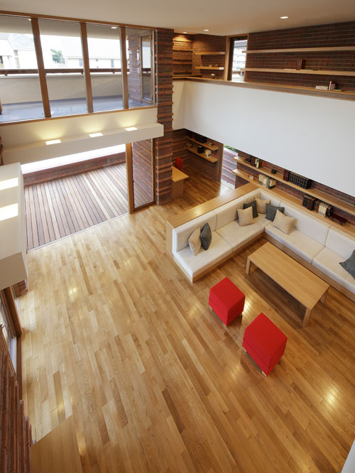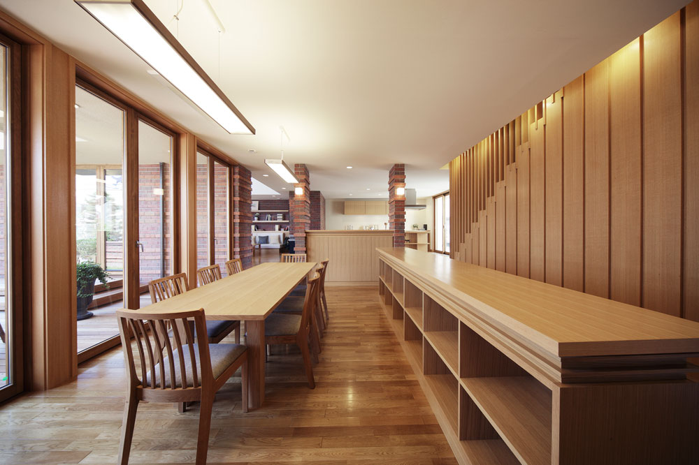 ユーソニアコレクションンハウスの基本的な形状であるL型の平面を持ち、落水荘のキャンチレバーを強く印象付ける斬新な外観デザインで、陰影によって水平ラインと奥行きを表現するディテールが特徴的です。フランク・ロイド・ライトの愛弟子である天野太郎氏のもとで建築を学び、日本の生んだ巨匠丹下健三氏のビジネスパートナー・アーキテクト5の一人で、芝浦工業大学教授でもある建築家堀越英嗣氏によるオーガニックハウス作品です。